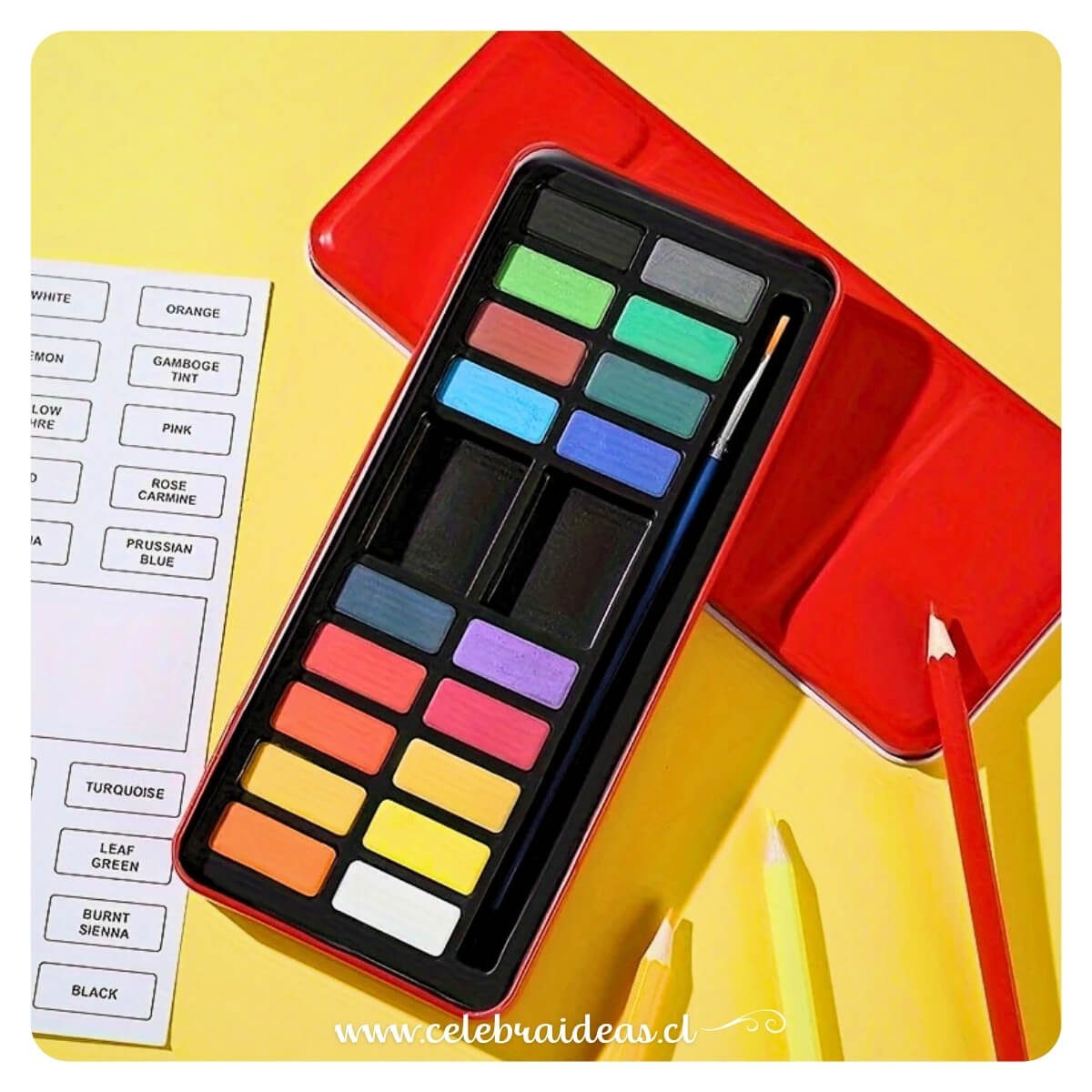 Set de Acuarelas 18 Colores en Pastillas | Caja Metálica Compacta