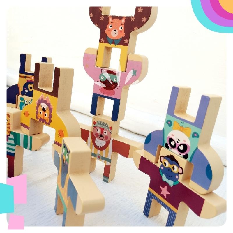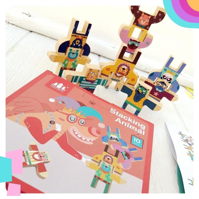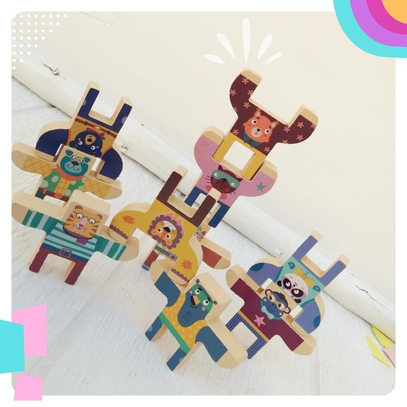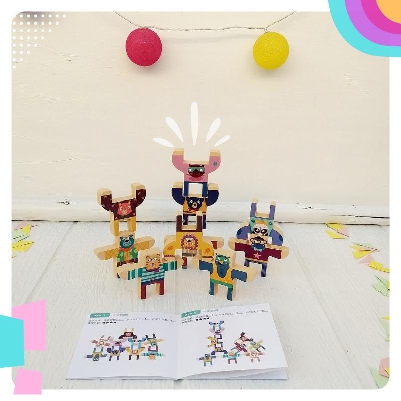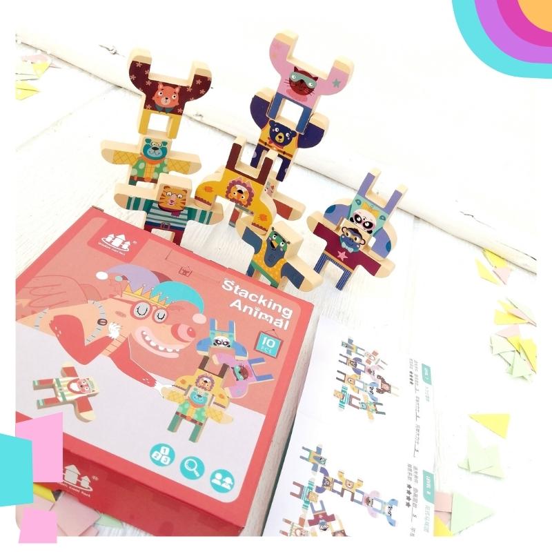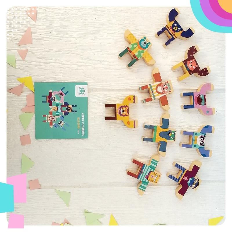 Juego de equilibrio: Para que tu pequeño practique la motricidad, tolerancia a la frustración con este juego de equilibro, compuesto por 10 figuritas de animalitos. 🦁🐱🐶