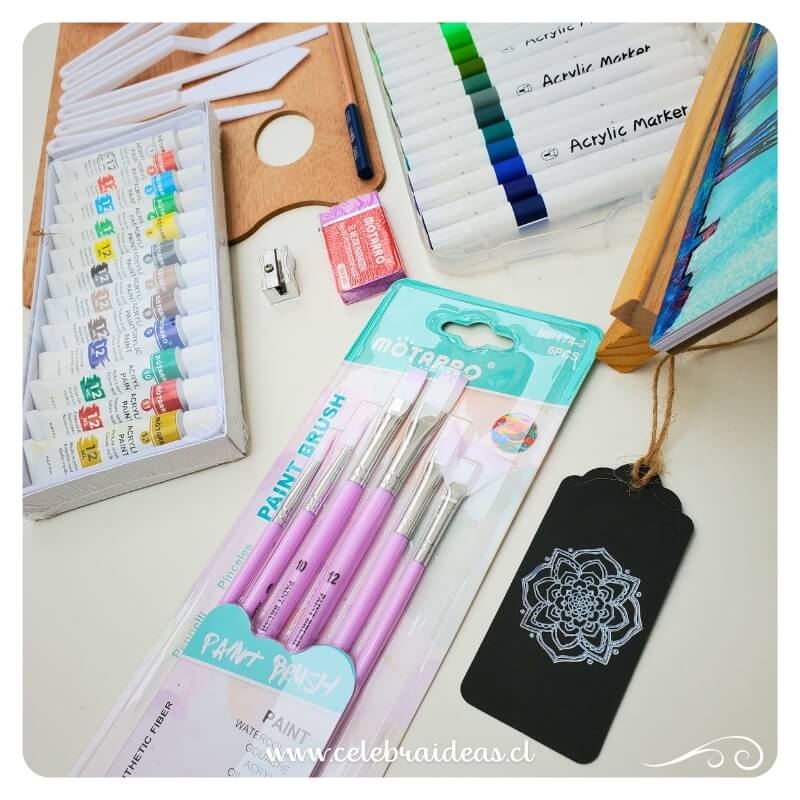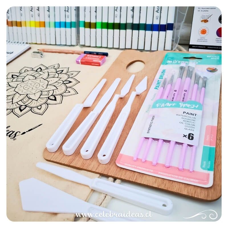 • Pinturas: base acrílica, alta pigmentación, secado rápido, resistente al agua una vez seco.