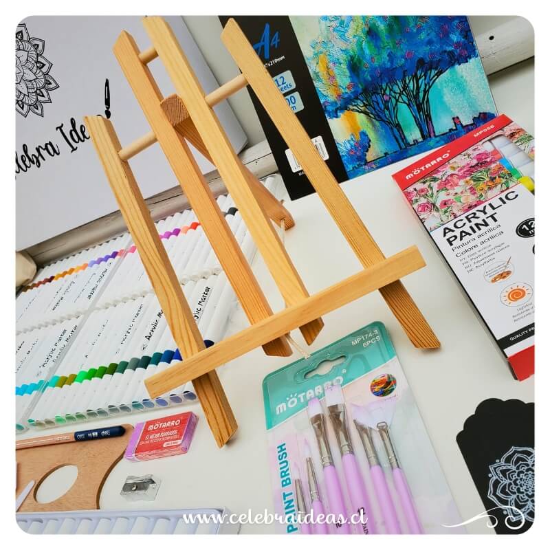 • Atril: madera de pino, plegable, ideal para espacios reducidos.
