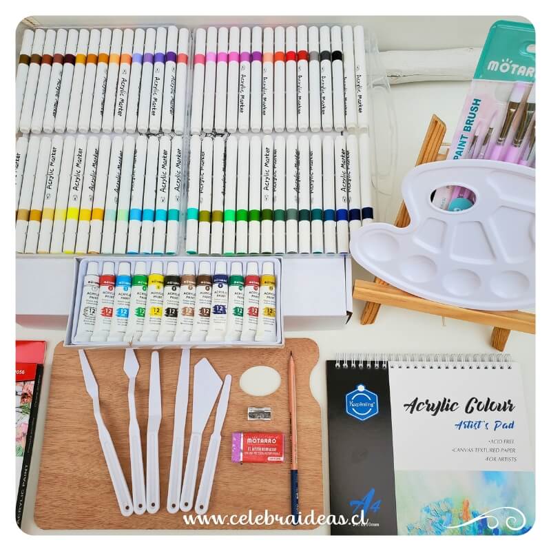 Set de Arte Kit Pinturas y 60 Marcadores Acrílicos 🎨🖌️