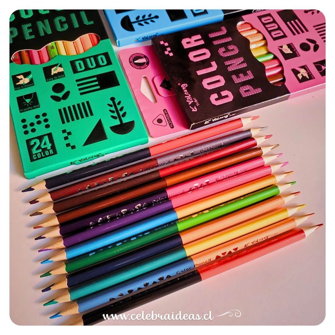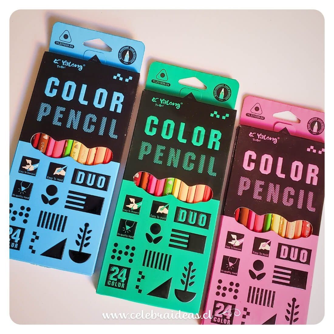 Lápices de Colores Bicolor DUO 24 Colores (12 Pcs) | Doble Punta😊✏️