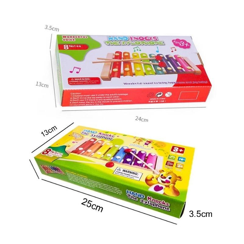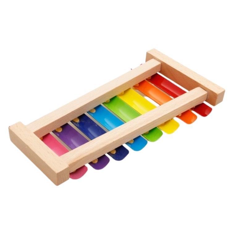 Hermoso metalófono de madera y metal con 2 baquetas con 8 tonos musicales