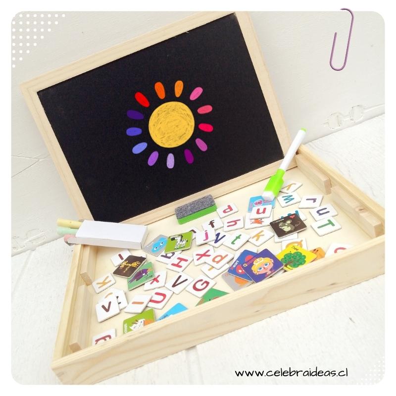 Hermosa Caja Tablero con una pizarra didáctica doble cara (para tiza y magnética) Para fomentar el aprendizaje de Ingles