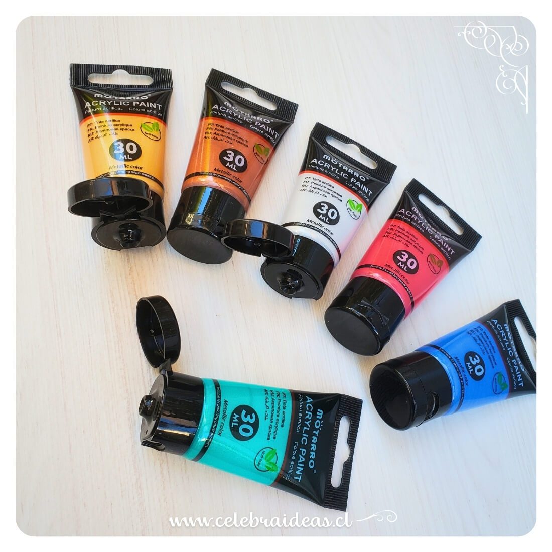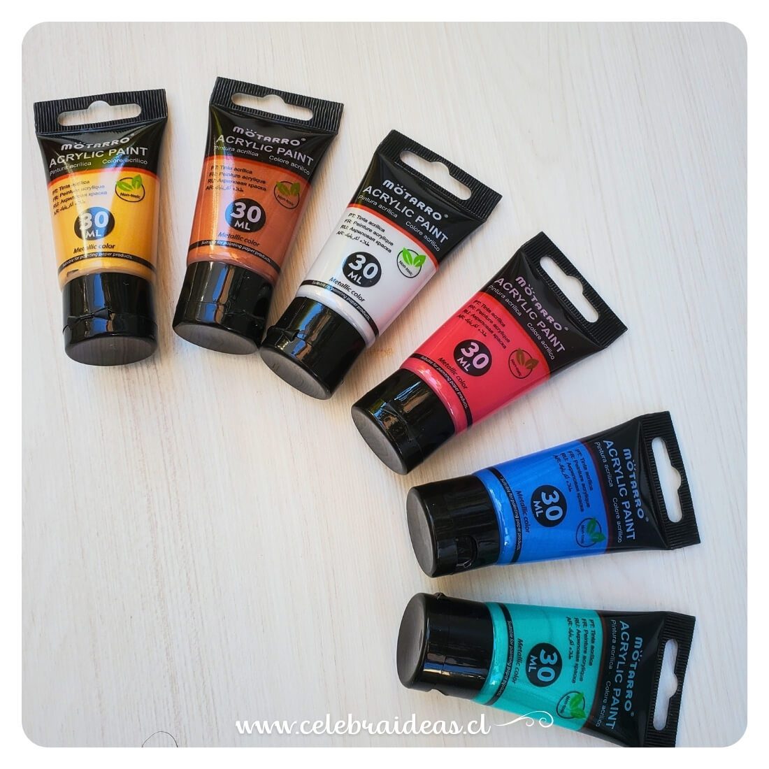 Pinturas Acrílicas Metalizadas Motarro | Set 6 Colores de 30 ml 🎨✨