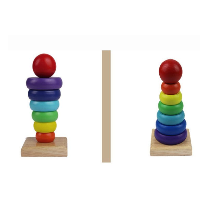Las torres de encaje apilables estilo Montessori son muy practicas para ejercitar la seriación y la motricidad fina en los niños pre-escolares.